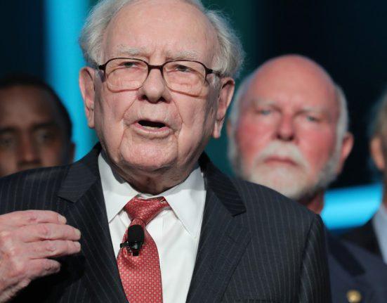 Let’s examine the performance of Warren Buffett‘s investment conglomerate Berkshire Hathaway. The shares have traded sideways for most of the past year: Berkshire